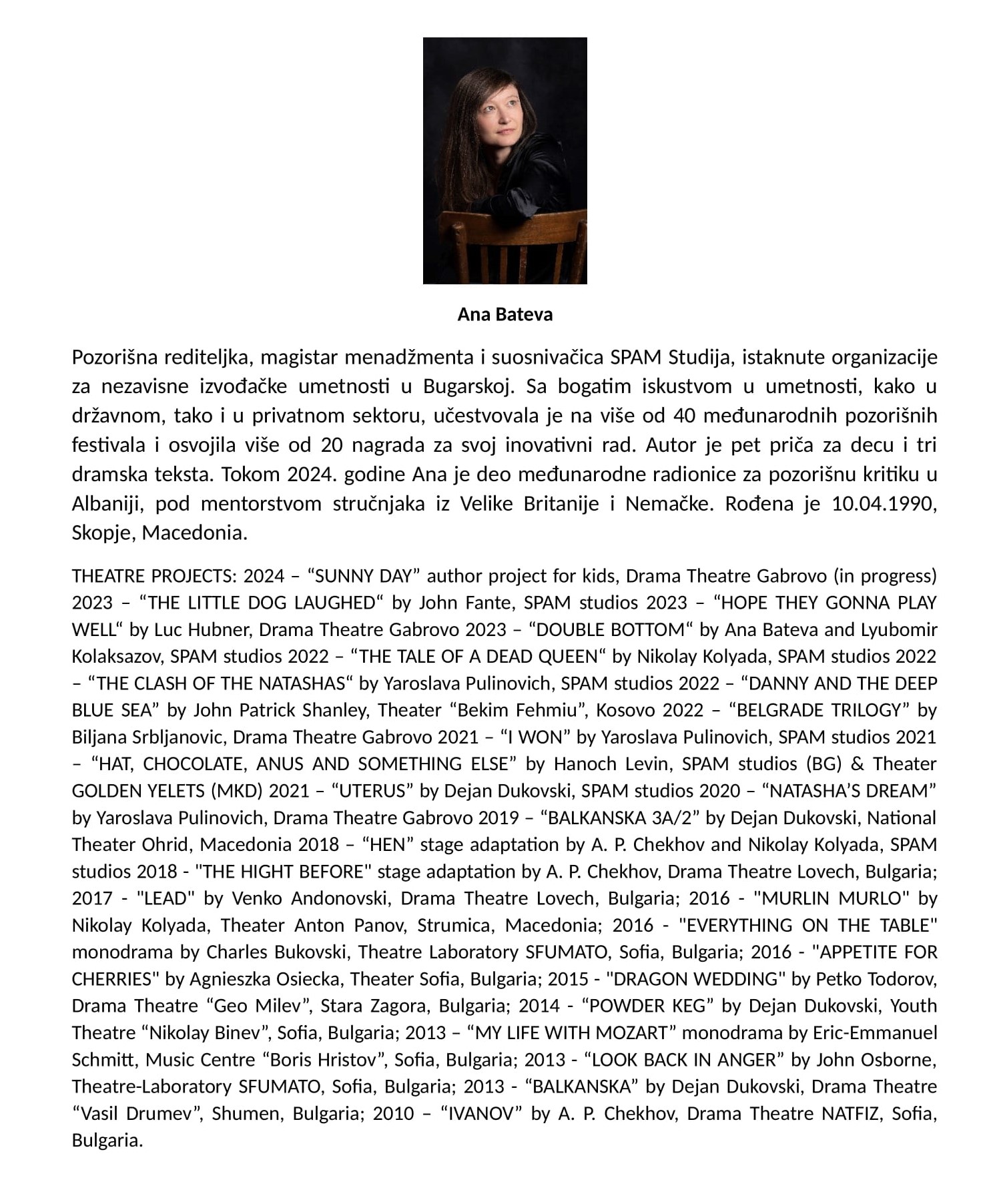 Ana Bateva, rediteljka iz Sofije, Republika Bugarska