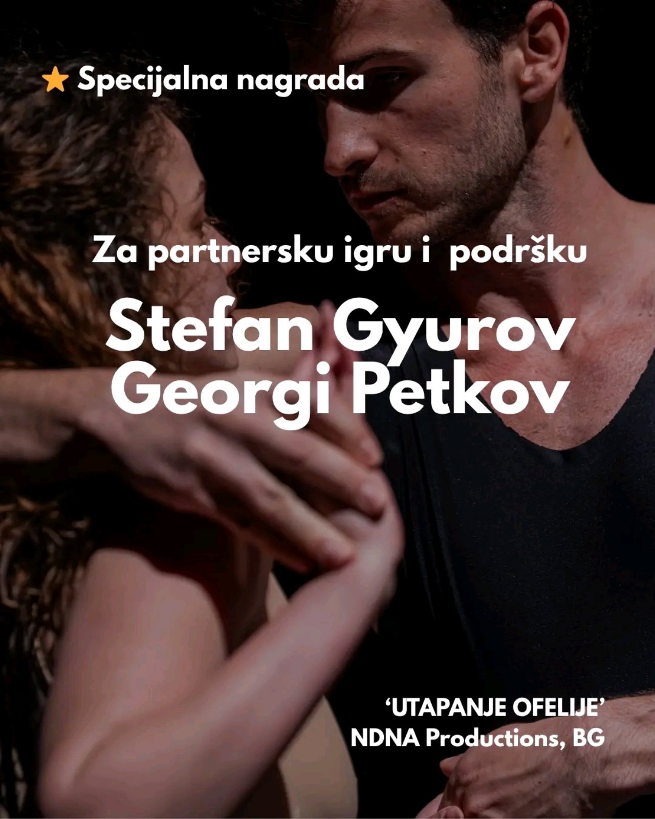 Emilija Tončeva i Marchela Vasilena Dimitrova za uloge u predstavama Tihi tehničari i Njenim glasom; – Studio Karakashyan, Sofija, Republika Bugarska